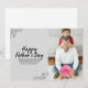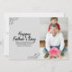 Este cartão de saudação do Dia do Pai captura um momento alegre e comovente entre pai e filho. Do lado esquerdo, lê-se: "Feliz Dia do Pai Obrigado por ser meu herói e guiar a luz. Amo-te sempre, o teu pequenino." A elegante tipografia negra em um fundo de cinza mole expressa amor, admiração e sincera gratidão. Acentos abstrato nos cantos adicionam um toque decorativo moderno, mas sutil. No lado direito do cartão, uma foto quente mostra uma criança brincalhona cobrindo os olhos do Pai por trás, enquanto ele recebe um presente lindamente embrulhado em forma de coração. A imagem irradia o amor, a surpresa e a proximidade — incorporando perfeitamente o espírito do Dia do Pai. Este cartão é ideal para as crianças darem aos seus pais, celebrando o seu herói com carinho e um toque pessoal.