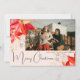 Este cartão floral cor-de-rosa Feliz Natal, dois cartões fotográficos, tem um design brilhante e elegante com ilustrações vibrantes de aquarela de poinsetos vermelhos e cor-de-rosa e delicados verdes de inverno. Com elementos botânicos quicos como pinho, sagrado e bagas de inverno, a paleta colorida do cartão, incluindo rosa poeirento e sotaques de ouro, adiciona um toque de boho a uma estética de férias moderna. Esta design de dezembro festiva combina uma vibração leve e caprichosa com um tema floral perfeito para a época de Natal.