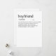 Adicione algum humor e estilo ao seu presente de Dia de os namorados com esta engraçada placa de "Namorado Definição". Apresentando tipografia espirituosa, minimalista e um olhar limpo, ele fornece uma mensagem divertida e leve que certamente fará seu sorriso significativo. Há também um espaço vazio onde você pode incluir sua mensagem manuscrita personalizada para ele. Quer uma característica personalizada e espirituosa adicionada à definição? Chame-me em: shahirah.creates92@gmail.com, e eu vou torná-lo exclusivamente seu.