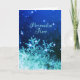 Feito em fundo azul brilhante, mas escuro, embelezado com flocos de neve cintilantes e estrelas em diferentes tons de turquesa e polvilhado com faíscas brancas. Delicado e bonito. Pronto para personalizar.