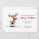 Celebrate the holidays with a touch of humor and charm using this funny quirky Santa reindeer Christmas party invitation. Featuring a whimsical watercolor reindeer and Santa in classic red and green, this minimalist cartoon design adds playful personality to your festive event. Perfect for office gatherings, family celebrations, or holiday cocktail parties, it’s editable and printable for easy customization. The hand-drawn style and modern lettering make it both trendy and timeless. Bring smiles and cheer to your invitees with this lighthearted, artistic Christmas design!