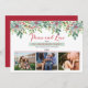 Boho três foto "Peace and Love" vermelha, horta e verde-escura colorido de água e bagas design de feriado floral. Basta adicionar suas fotos e seu nome de família, nomes e o ano na frente e você está pronto. A parte de trás apresenta um fundo vermelho de morango. Design composto por Holiday Hearts Design (direitos reservados).