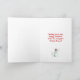 Um cartão de saudação de Natal com a minha imagem original de um boneco de neve sorridente segurando um presente de Natal no dia de Natal.