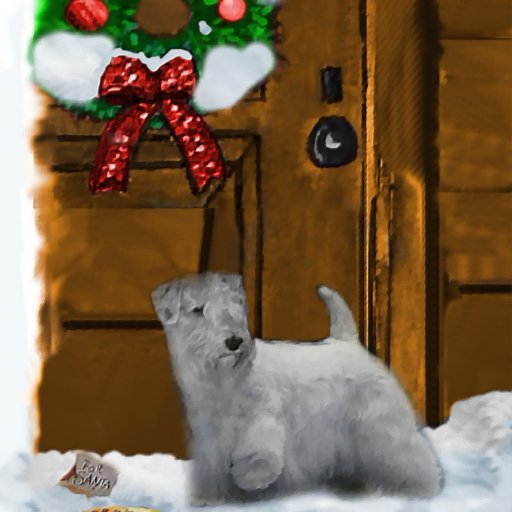 Feriado bonito art. de Sealyham Terrier. O Sealyham espera no patamar coberto de neve pelo papai noel para chegar, guardando os biscoitos do papai noel. Presentes do Natal, cartões de Natal, porte postal, roupa, e mais maravilhosos.