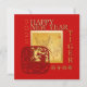 Cortado em papel Tigre Vermelho (imagem impressa) no canto de uma pintura asiática com saudação em inglês no topo (inscrição dourada e sombra não personalizável). Design na placa plana quadrada com saudação em chinês + vertical 2022 para personalizar se quiser. Cartão de saudação correspondente. Perfeito para o Ano Novo Chinês do Tigre 2022.