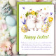 Acenda a Páscoa de alguém com o nosso adorável cartão de Cartões de natal! Apresentando ilustrações doces de cor d'água de coelhos bonitos de mãos dadas, uma feliz tulipa amarela, ovos de Páscoa, e charmosos corações roxos e amarelos, esta carta certamente trará sorrisos. Envie seus desejos de Páscoa mais calorosos com esta design encantadora que captura a alegria e o espírito da estação. Perfeito por espalhar amor e felicidade aos amigos e à família neste dia especial!