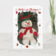 Lindo boneco de neve fofo com chapéu e cachecol vermelho e verde para o Primeiro Natal do Bebê