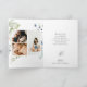 Elegante aquarela, quadro botânico de inverno ártico, cartão com fotos de férias. Solteiro na frente da foto, um belo roteiro de "Feliz Natal" em cinza com modelo durante o ano. Dentro, colagem de 3 fotos com a folhagem botânica de inverno e o quadro de framboesa, espaço de modelo para sua mensagem e nomes.