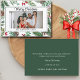 Personalize este elegante Cartão de Férias de Quadro Botânico Verde com sua foto, nome e mensagem de feriado favoritos. Design apresenta uma bela moldura de folhas de pinheiro de Natal, cones e morangos vermelhos. Pode personalizar facilmente a parte de trás do cartão com a sua mensagem de feriado num fundo verde festivo. Fácil de personalizar. Feliz Natal!