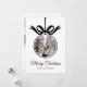 Esta placa plana de dois lados, moderna e minimalista, de Natal, apresenta uma elegante tipografia da escrita, um quadro fotográfico de ornamento e um arco negro e uma fita esbranquiçada. Insira suas fotos favoritas e personalize-as de acordo com o seu gosto. Fotos de prostooleh / Freepik.