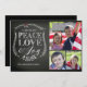 Quadro temporário 3 fotografia cartão com fotos Natal Feriado com lindas letras tipografia com o ditado "Desejando-lhe Paz Amor e Alegria adornada com folhas desenhadas à mão.
