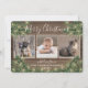 Envie saudações alegres e compartilhe quatro das suas fotos favoritas com um cartão de feriado de colagem de na moda. Todo o texto nesta modelo é simples de personalizar para incluir qualquer texto, como Feliz Natal, Felizes Feriados, Saudações de Ano Novo, Cheers de Ano Novo, etc. (DICA DE PLACEMENTO DE IMAGEM: Uma maneira fácil de focalizar uma imagem exatamente como você deseja é recortá-la antes de ser carregada no site do Zazzle.) O design moderno estilo de fazenda apresenta um fundo vintage castanho de madeira falsa, verde-pinheiro botânico rústico com luzes de cordas, tipografia de estilo manuscrito de tendências e uma grade fotográfica única com 4 imagens de sua escolha. A família e os amigos adorarão mostrar esta elegante carta personalizada.