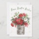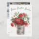 Estação Rustic IV | Recipiente prateado cheio de belas flores vermelhas e brancas de férias, verde e bagas. O sentimento "Warm Winter Wish" flutua acima do bouwuet. | 57372HR