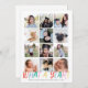 Este cartão com fotos moderno apresenta fotos quadradas TWELVE em um layout de grade. Perfeito para carregar muitas das suas fotos favoritas ao longo do ano. Abaixo dessas fotos está uma saudação manuscrita em cores divertidas que diz "QUE ANO!" No verso há muito espaço para anotar as fotos na frente ou simplesmente escrever uma mensagem mais longa. Além disso, TODAS as cores deste design são personalizáveis, até mesmo a saudação!