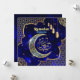 Uma linda e elegante borda geométrica islâmica, cartão de saudação do Ramadão Mubarak com crescente dourado azul. O design apresenta um lindo crescente dourado, lanternas islâmicas penduradas, borda geométrica islâmica dourada nos cantos, mandala dourada, estrelas douradas em fundo azul escuro. Envie seu amor e desejos para sua família, amigos e entes queridos com nossos cartões de saudação lindos e elegantes. Você pode alterar o texto clicando em personalizar este modelo.