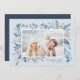 Este cartão de férias simples e elegante, inspirado na natureza, apresenta a sua foto favorita, horizontal ou orientada à paisagem, enfeitiçada nos cantos com imagens de uma cor azul-aquática graciosa. "Feliz" aparece no canto superior esquerdo em um script manuscrito em chic, com seus nomes e o ano no canto inferior direito. Uma elegante design botânica para as suas saudações de Natal de 2021.