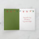 Rato bonito segurando um ornamento de ouro por uma árvore de Natal em fundo branco. O texto é editável.