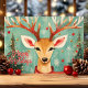 Celebrar as festas com este charmoso cartão de saudação de renas, com uma rena branca enfeitada com ornamentos festivos e cercada por árvores de Natal e flocos de neve. O design pintado à mão acrescenta um sentimento único e aconchegante, perfeito para enviar desejos de feriados incríveis. Ideal para espalhar alegria e calor nesta época de Natal.