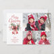 Enviar saudações MERRY CHRISTMAS nesta temporada de festas com um cartão de saudação de fotos com 3 fotos e tipografia moderna, vermelha de chic, para a saudação destacada com um arco vermelho de aquarela e holly. ASSISTÊNCIA: para obter ajuda com a modificação ou personalização do design, redimensionamento, transferência do design para outro produto ou, se você quiser coordenar itens, entre em contato com o designer ANTES DE ENCOMENDAR através da guia MENSAGEM de bate-papo Zazzle ou envie um e-mail para makeitaboutyoustore@gmail.com.