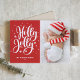 Festivo Holly Jolly Cartão de Férias Fotografadas com Mão | Enviar cartões de natal festivos à família e aos amigos com este cartão festivo de férias personalizável. Ele apresenta uma camada de "salgadinhos" com destaque para neve e flocos de neve. Personalize adicionando sua foto favorita. Itens correspondentes estão disponíveis.