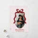 Cartão De Festividades Red Pink Stripes & Bow Frame Christmas Photo