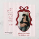 Merry Christmas Holiday Card with a Simple Vintage Pink Stripes with Red Bow Frame, Merry Christmas and one Photo. Perfect for sending warm wishes to loved ones during the holiday season!