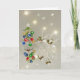 Reeleições de renas de cristal. Fotografia original. Belas renas de cristal e árvore de natal de vidro com imagens refletidas e estrelas.