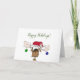 Envie este cartão de feriado adorável para amigos e familiares. É decorada com uma rena bonita e colorida vestida de chapéu de Papai noel. Os ornamentos metálicos verdes e azuis pendem das suas galhadas. Baseado em uma peça de arte original por © One Artsy Momma.