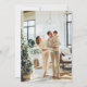Cartão de Natal preto e dourado com flocos de neve e uma cena de inverno com renas na frente e uma foto na parte de trás. Personalize facilmente este cartão de feriado elegante com sua foto e texto.