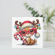 Cartão De Festividades Rena Bonita Segurando Cana de Açúcar Listrada
