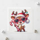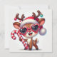 Este cartão de Natal plano apresenta uma rena alegre segurando uma bengala de doces, adornada com enfeites festivos. Perfeito para compartilhar o espírito da época com familiares e amigos. Personalize-o para torná-lo ainda mais especial.