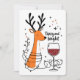 Um design divertido e alegre de Natal apresenta uma rena enrolada em luzes festivas, segurando um copo de vinho tinto, cercada por estrelas coloridas. O texto manuscrito diz: "Bêbadas e Brilhantes". Este design encantador está disponível em uma variedade de produtos, tornando-o um presente perfeito para amantes de vinho.