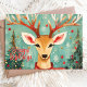 Celebre as festas de fim de ano com este encantador cartão de Natal de rena, apresentando uma rena caprichosa adornada com ornamentos festivos e cercada por árvores de Natal e flocos de neve. O design pintado à mão adiciona um toque único e aconchegante, perfeito para enviar votos sinceros de Natal. Ideal para espalhar alegria e calor nesta temporada de Natal.