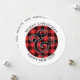 Design de Natal único com grande Ampersand com fundo de Xadrez de Buffalo vermelho e preto. Feliz Natal e design de feriado de Feliz ano novo em uma placa ROUND única! Edite seu nome no verso e o ano atual na frente.