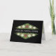 Um cartão de Natal com os ganhos de rosas do vermelho e do White Christmas, um azevinho e uma hera chiques, florais em um fundo preto e no cumprimento gaélico irlandês "Nollaig Shona Dhuit" da língua no na moda, rotulação moderna, no branco. De um design pintado à mão por Judy Adamson. Sinta por favor livre adicionar seus próprios texto do interior.