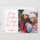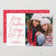 Este doce cartão de feriado, porém moderno, apresenta um roteiro de caligrafia vermelha sobre um fundo branco nítido. A saudação do roteiro na frente diz "Feliz Natal e Feliz ano novo". Este design acomoda um solteiro, uma foto quadrada na frente da placa. No verso encontrará um padrão vermelho festivo e branco desenhado à mão que pode ser removido se desejado. Você também pode adicionar outra foto ou texto no verso selecionando "personalizar design mais".