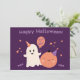 Celebre o Halloween com este adorável cartão de feriado roxo, projetado para trazer um toque divertido à temporada assustadora. Com ilustrações sazonais fofas, é perfeito para enviar saudações festivas a amigos, familiares ou colegas de trabalho. Adicione seu toque pessoal dentro para torná-lo um cartão único para as celebrações de 31 de outubro.