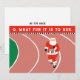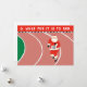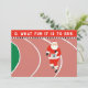 Creative running track-and-field Christmas holiday cards featuring funny Santa runner racing around a track.
