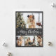 Snowflake 4 Foto Colage Rustic Chalkboard Snowflake - Cartão de Feriado de Natal Feliz. Esta modelo de 4 fotos, festiva, minimalista, apresenta uma bonito colagem fotográfica, poucos flocos de neve e diz Feliz Natal! O texto de saudação do "Feliz Natal" é escrito em um belo tipo de letra tipografia manuscrita, de cor branca, em quadro negro ou fundo de quadro negro. No verso, saudando o texto modelo a branco. Bonito cartão de saudação para sua família e amigos nesta época de Natal e Férias.