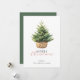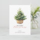 Simple rustic greeting card features watercolor pine tree in a basket. Paired with modern and script typography