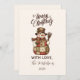A cozy rustic Christmas design featuring a charming snowman dressed in a quilted patchwork coat, plaid scarf, and country hat. The warm earthy tones and vintage textures create a nostalgic farmhouse feel, perfect for winter gatherings, barn parties, or cozy family celebrations. A timeless and heartwarming invitation that captures the spirit of a country Christmas.