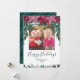Este design boho rústico apresenta um belo buquê de aquarela em cascata de poinsetos vermelho e rosa, juntamente com pequenas bagas e folhagem de inverno exuberante na frente, no topo, incluindo verde eucalipto e boughs verdes, em tons de verde-lacrimejo com detalhes sutis de ouro. Escondido abaixo do buquê está uma foto quadrada personalizável que você pode substituir por sua própria. Abaixo, a foto é uma saudação personalizável na popular tipografia do roteiro de caligrafia para um olhar com letras na cor verde-escura (a mensagem padrão é "Felizes Feriados".) Abaixo da saudação estão uma assinatura familiar e ano personalizáveis, com mais verde e bagas na parte inferior. A parte traseira da carta apresenta um fundo verde-alto rico com faixas de burgundy diagonal, rosa e branca para corresponder à parte frontal da carta. Você pode personalizar este item alterando o texto na modelo do produto. Fotografia © Storytree Studios, Stanford, CA.