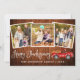 Cartão de Férias de 3 Fotos de Feliz Dia de Ação de Graças - Caminhão Vermelho Vintage com Watercolor com Pumpkins e Folhas de outono na Madeira Russa do País