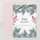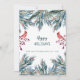 Cartão de cumprimentos de férias de inverno em estilo rústico moderno com elegantes ramos de pinheiro em tons de azul naval, verde caçador, frutos de azevinho e dois pássaros cardeais vermelhos, juntamente com a tipografia editável "Felizes Festas" e seu nome / assinatura. +++++++++++ Uma maneira simples de enviar seus cumprimentos de Natal para familiares ou parceiros corporativos. ++++++++++ O cartão tem uma cor rosa claro no verso para permitir que você - se desejar - adicione algumas linhas manuscritas pessoais e assinatura.