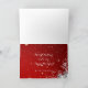 Cartões de foto de Natal festivos e vermelhos. A foto de cachorro preto pode ser usada ou transformá-la em uma foto do seu animal de estimação, crianças ou família. A moldura é decorada com espirais floreados brancos e ornamentos brancos prateados. O mesmo design vermelho é dentro com texto personalizado de script branco. Também adicione uma assinatura impressa.