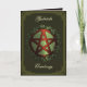 Este cartão apresenta um pentáculo ricamente colorido envolto em hera de Natal e emoldurado por árvores de inverno. Você pode personalizar todo o texto deste cartão para atender às suas necessidades.