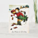 Cartão De Festividades Saudações de Natal com um menino tem árvore de nat