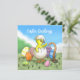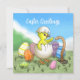 O pintinho recém-eclodido deseja uma felz pascoa à minhoca.
