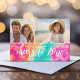 Feriado não convencional e design de Ano Novo com uma vibração de 70 anos. FRONT - 2 Colagem de fotos com uma área central para o tipo e um sotaque de corante de gravata. "Saúde ao Ano Novo" está numa fonte moderna que coordena com o fundo não tradicional. Adicione a sua saudação e assinatura familiar a este design eclético e colorido. BACK - Padrão de coloração retrorativa em uma mistura de rosa-quente, laranja e lacre. Se precisar mover alguma coisa, clique no botão personalizar para fazer alterações.