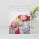 Espalhe alegria nesta temporada de festas com nossos cartões com fotos coloridos, mas modernos, com sua foto vertical favorita sobreposta com "CHEER" em letras visuais vermelhas e verdes pontilhadas. Personalize com seus nomes e o ano, ou uma saudação de sua escolha, usando o campo modelo fornecido. A parte traseira apresenta um padrão de diamante pontilhado opcional em branco em verde caçador.